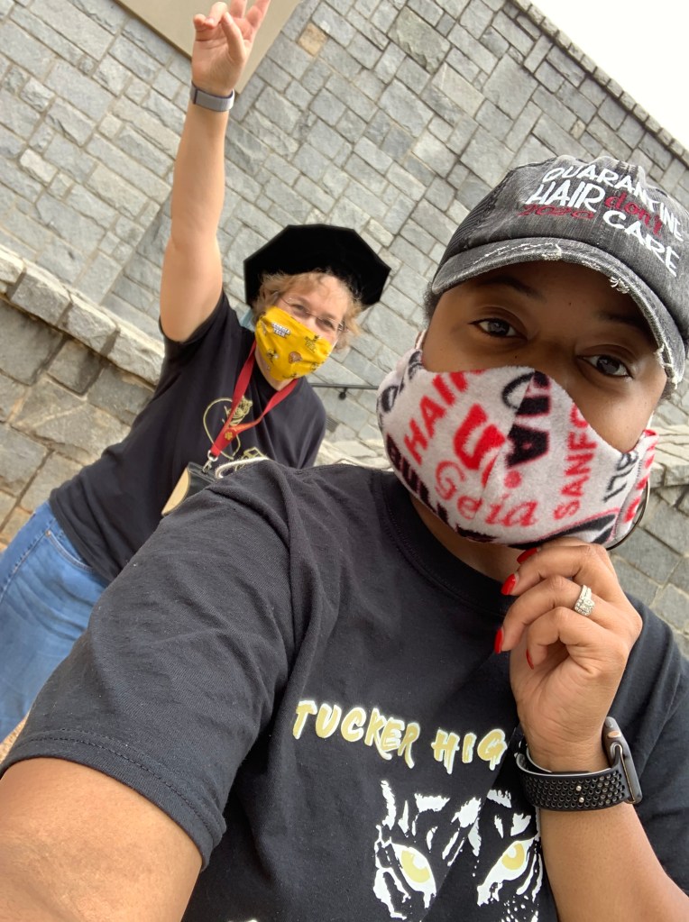Dr. Barber (with her new graduation cap in the background) & Ms. Poole