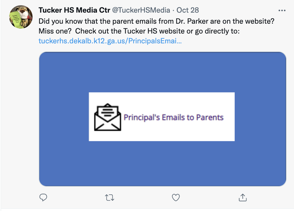 Tweet on alternative communication methods to read the principal’s weekly parent emails.