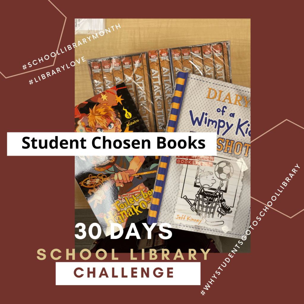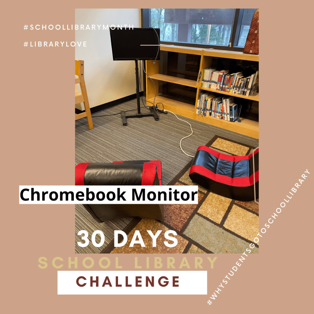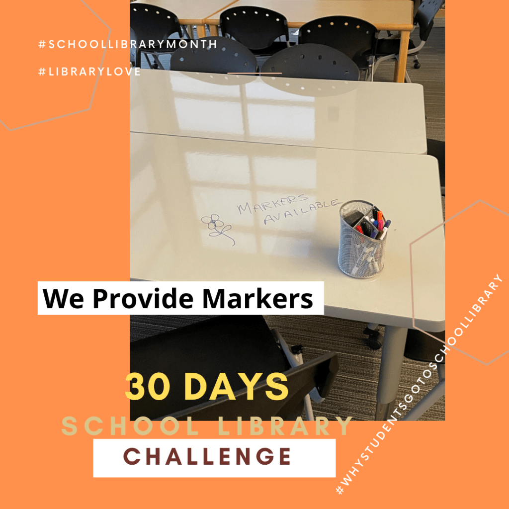 This year, I decided to use Instagram and Twitter to share images that show students, parents, teachers, and the public why students come to the library. The challenge I set myself was to share 30 images over the 30 days of April. Admittedly, I had several people make suggestions for images, and then I decided to standardize using Canva. I believe this gives everyone a glimpse into why students go to their school library.