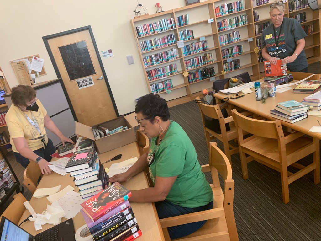 We added over a hundred books to the school library; a task that would have taken weeks. And, the library did not close at any time. Students continued to come on passes and classes were held in the space, because I asked for help.