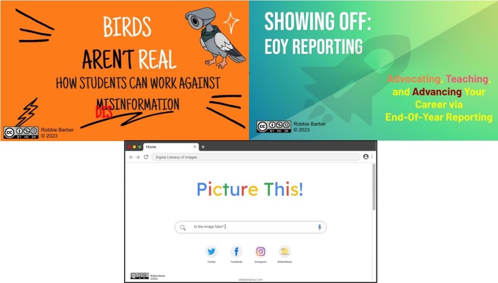 How much influence do I have? In my school, I am the go-to person. I am available to help students and teachers when they get stuck with technology. Too often, though, my students need help with “simple” things like sharing a Google doc correctly or doing basic internet searches. When I can, I teach classes how to use Boolean logic in searches – both in databases and general internet searches. I teach how to recognize fake images online and how to use the “Birds Aren’t Real” model to recognize manipulation, find the humor, and engage in student advocacy.