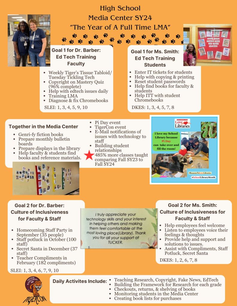 For my annual EOY report, I decided that it was not mine alone. At the start of the year, I worked with my LMA to create her goals as compliments to my goals. The EOY report should showcase our goals and how they worked together. Also, I considered this report to represent a big “Thank you” to the district for providing me a full-time assistant. (I said this to the school board members and superintendent in person at their March meeting.)