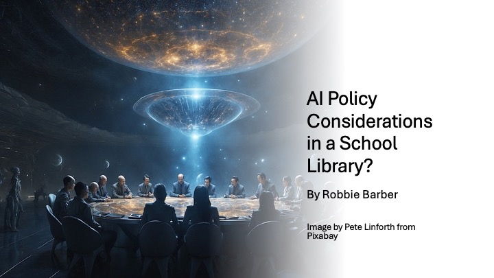 As AI grows, what policy considerations would I like to see in my school library? (Note: this blog is in … Continue reading AI Policy Considerations in a School Library?