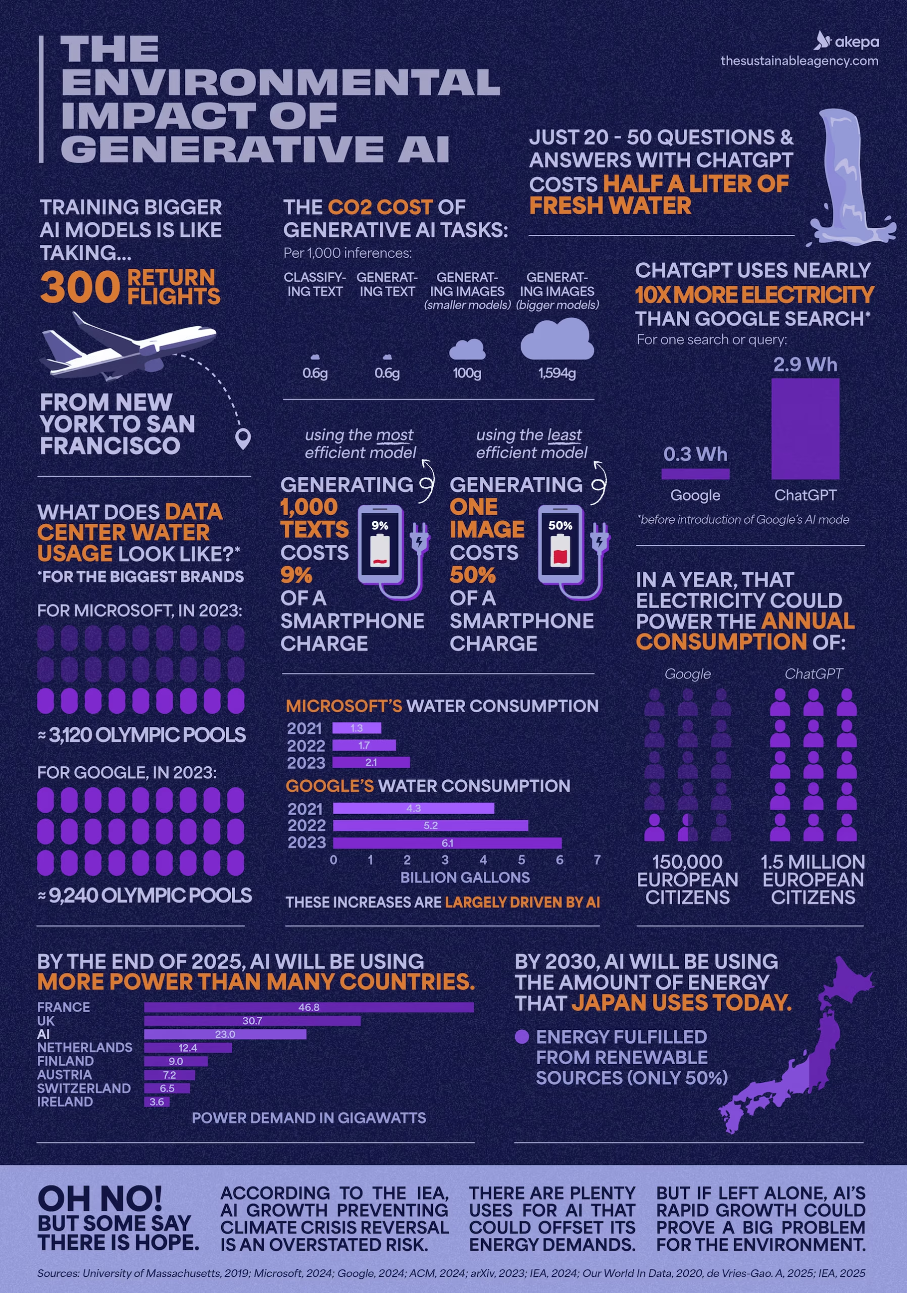 Dhanani, R. (27 September 2024). Environmental impact of generative AI – 20+ stats & facts. https://thesustainableagency.com/blog/environmental-impact-of-generative-ai/