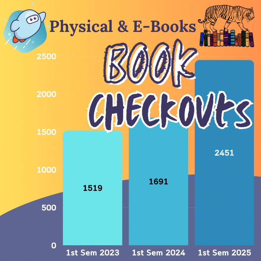 On the surface, this looks fantastic with book checkouts growing with a huge jump this past Fall. Wow! But, we need to ask questions. What made the numbers change? Did the student population grow over three years or reduce? Was there a program that made the difference? In fact, this is due to a number of factors. After COVID lockdowns, the students did not want to read online, they wanted physical books. Then, as we moved further away from that experience, e-books and e-audiobooks started a resurgence. In fact, e-audiobooks are still on the rise as more teachers are now requesting them. Yah! I get to claim some influence here because I have been talking to teachers about helping our struggling students with having both the physical book and the e-audiobook together to help. Another major change was having the English department embrace more personal reading choices. They brought more classes to the library this Fall than ever before. Wohoo!